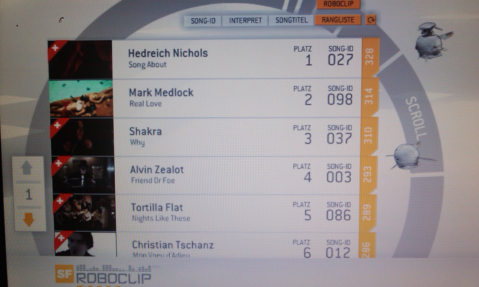 “Song About…” closed yesterday in the SF tv’s Roboclip top twenty–an amazing performance for a new video from a “new” artist in it’s first week! If you haven’t seen it yet, have a